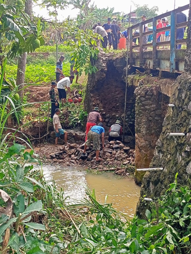 • Tak kunjung diperbaiki oleh Pemerintah Daerah, warga dan pengusaha patungan perbaiki jembatan